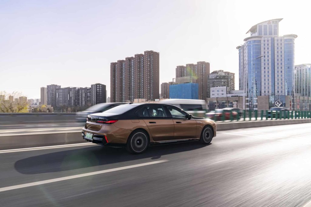 Trong buổi chụp hình tại Bắc Kinh lần này, BMW lựa chọn làm nổi bật mẫu sedan điện M Performance với phối màu Liquid Copper và Sapphire Black. Ngay cả khi không bổ sung thêm bất kỳ tùy chọn nào, chiếc M760Le này tại thị trường quê nhà Đức cũng có giá khởi điểm ít nhất khoảng 160.000 euro.