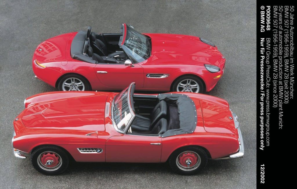 Nguồn gốc của Z8 bắt đầu từ chiếc xe mui trần vĩ đại nhất của BMW — 507 — nhưng Z8 chưa bao giờ mang cảm giác của một bản sao hoài cổ. Nó chắt lọc tinh thần của 507 — nắp capo dài, khoang lái lùi về phía sau, dáng đứng thể thao tối giản — rồi chuyển hóa thành một chiếc BMW hiện đại, không hề dựa vào hoài niệm giả tạo.