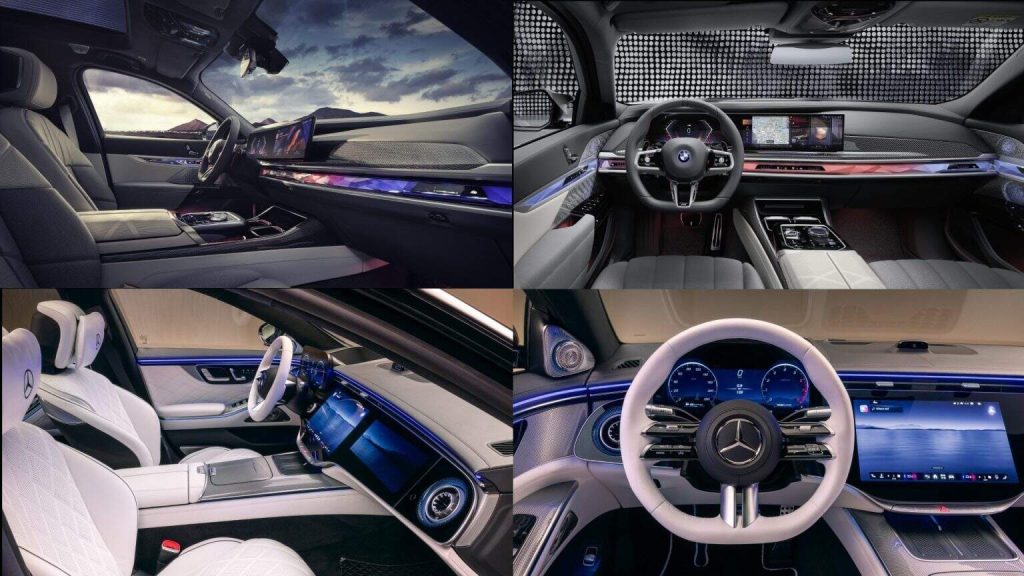 Bên trong khoang lái, điểm mới đáng chú ý nhất có lẽ là dây đai an toàn có sưởi — một trang bị mà BMW hiện chưa có câu trả lời tương xứng, dù chưa chắc tính năng này alone đã đủ sức thuyết phục đông đảo khách hàng. Nhắc đến “to”, hệ thống màn hình cũng được nâng cấp với kích thước lớn hơn: màn hình trung tâm 14,4 inch, cùng hai màn hình 12,3 inch ở hai bên. Rất có thể BMW sẽ bổ sung thêm một màn hình nữa cho BMW 7 Series LCI ra mắt vào cuối năm nay. Nhưng ở thời điểm hiện tại, Mercedes vẫn là ‘ông vua’ về diện tích hiển thị màn hình.